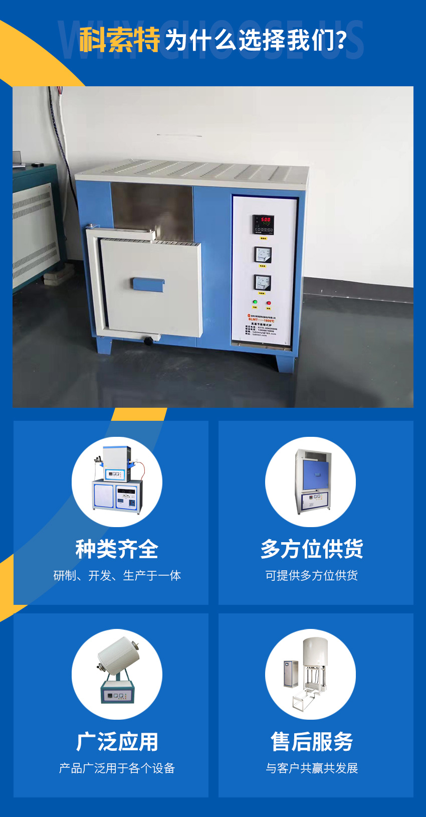 產(chǎn)品型號 | 型號:KST-XM-□-□ 一個□選擇溫度,例如:1200℃ 選擇12 二個□選擇內膛尺寸,例如:400*300*200mm 選擇24 既型號:BLMT-XA-12-24 |